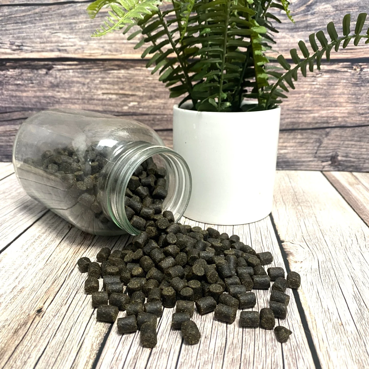 A high oil sinking pellet, black in colour, particularly good for halibut and sturgeon