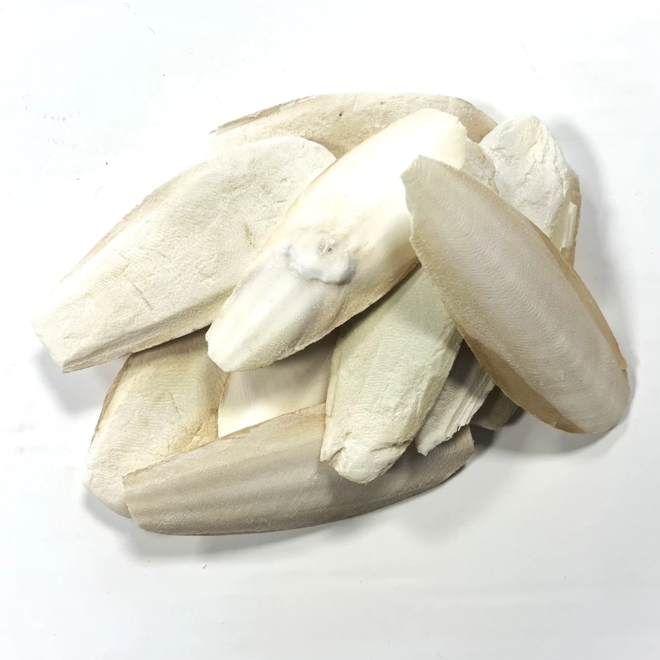 Cuttlefish bone, sometimes just called ‘cuttlebone’, is a hard, white, chalky substance usually in an elongated oblong shape, similar to a canoe. Because they are a natural product they can vary largely in size, but most cuttlefish bones are between 7-10cm (3-5”) in length. Cuttlefish bone is not actually a 'bone' at all, but rather the hard inner shell of a cuttlefish, which is a type of sea mollusc. They are a naturally occurring by-product, sourced from countries predominantly in Europe and East Asia where cuttlefish are harvested as a food product for humans. They can also regularly be found washed up naturally on beaches.