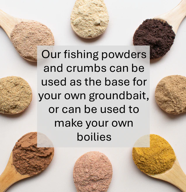 If you are looking to make your own boilies or powdered groundbaits, our fishing powders range is perfect for you. This range includes all the base ingredients you will need, including breadcrumbs (available in brown, white and red varieties), semolina flour, maize flour, fish meal, ground trout pellets and ground halibut pellets. You just need to add your own flavourings for groundbaits, or mix with eggs and flavourings to begin making your own boilies. For groundbaits we recommend adding powdered flavours, such as dried fruit powder or fish meal, to prevent clumping.